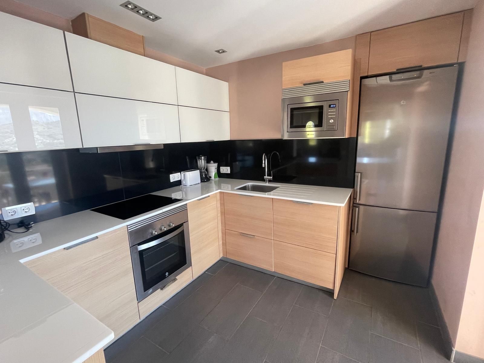 • открытая кухня с электрической плитой, электрической духовкой, микроволновой печью, посудомоечной машиной, холодильником-морозильником, кофемашиной, тостером и соковыжималкой