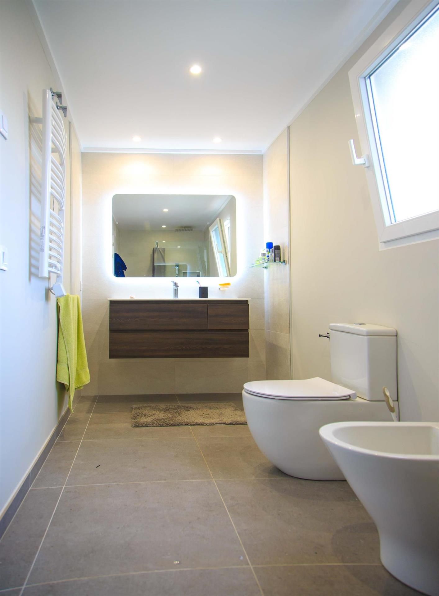 • baño con lavabo individual, ducha, bidé, inodoro y secador de pelo