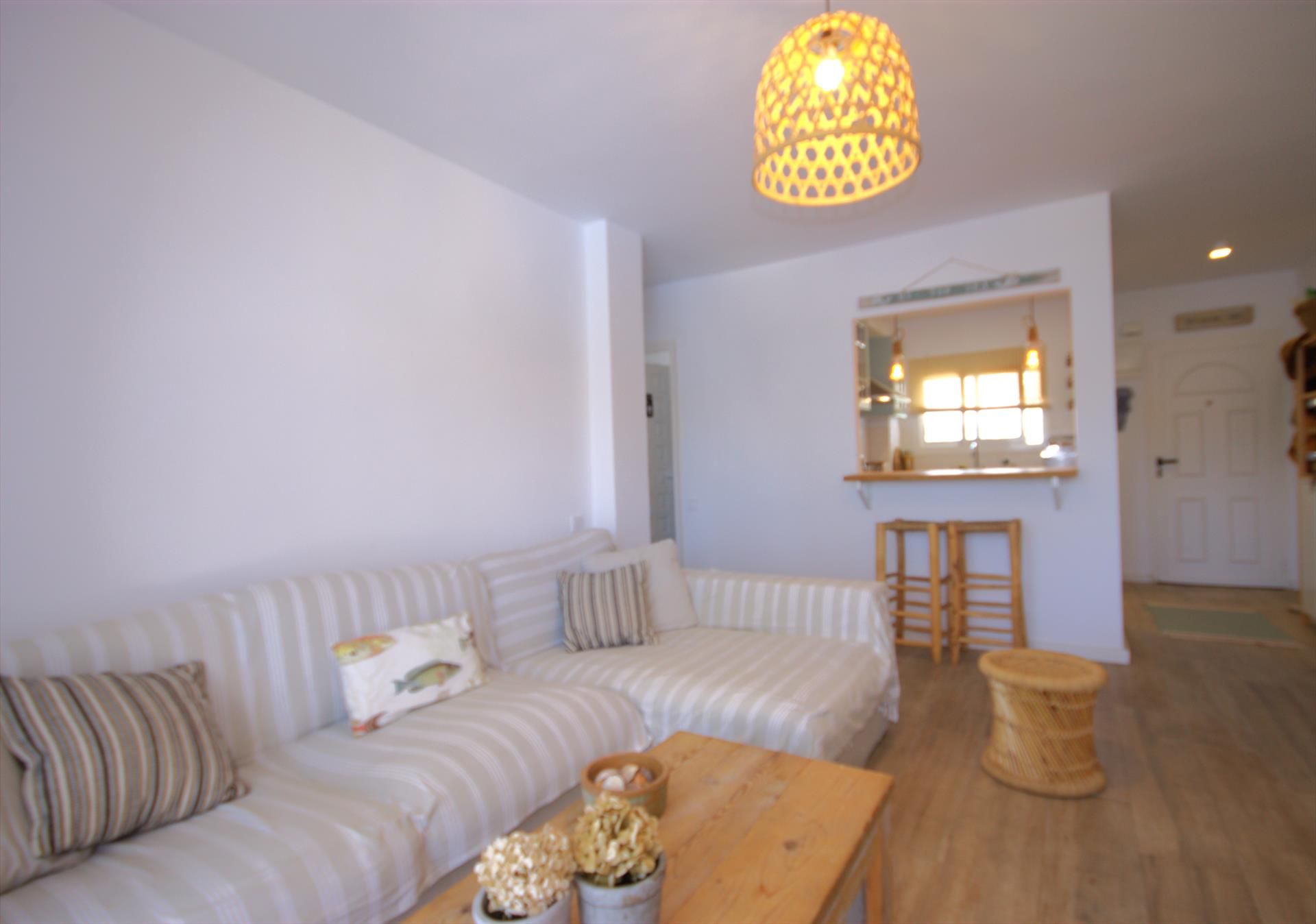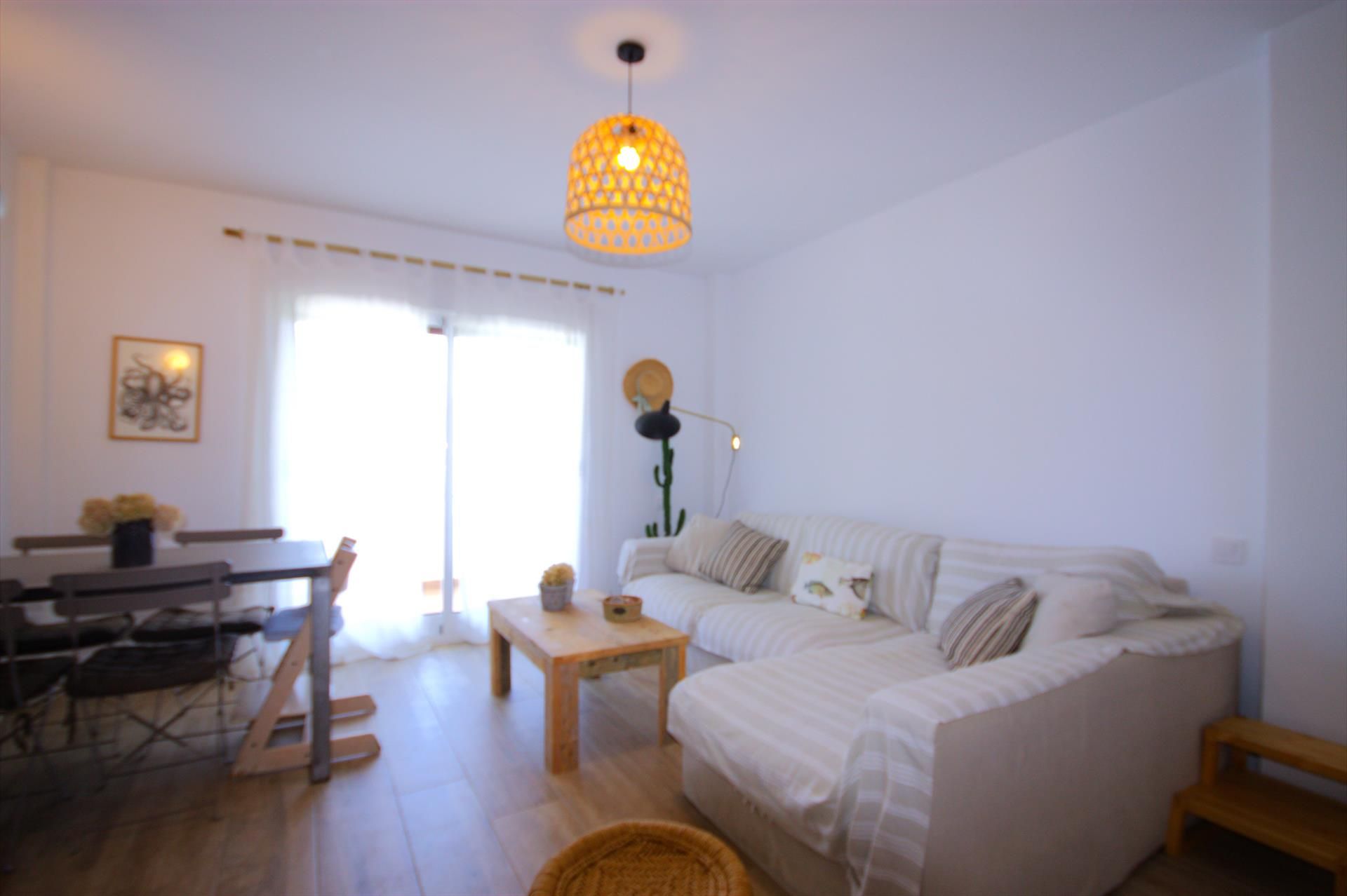 El apartamento de vacaciones tiene 2 dormitorios y 1 cuarto de baño. El alojamiento ofrece privacidad, un jardín comunitario con césped y árboles y unas maravillosas vistas a la piscina y al jardín. El confort y la cercanía de la playa, sitios para salir y lugares para ir de compras hacen de este apartamento un alojamiento apropiado para pasar sus vacaciones en España con familia o amigos.