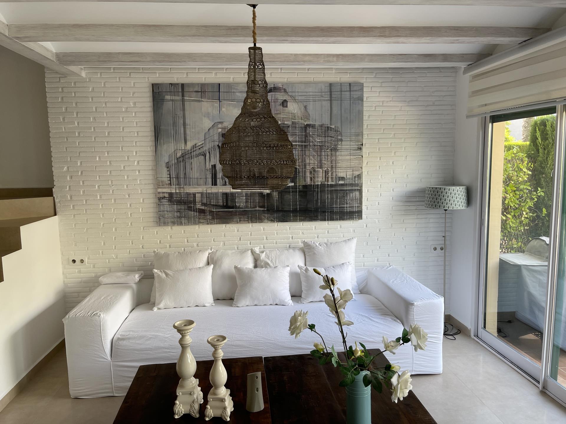 Casa de vacaciones bonita en Jávea, Costa Blanca, España para 10 personas. La casa está situada en una zona residencial, cerca de restaurantes y bares, tiendas y supermercados y a 500 m de la playa. La casa tiene 5 dormitorios, 4 cuartos de baño y 1 aseo para invitados, distribuidos en 3 plantas. El alojamiento ofrece mucha privacidad y un jardín comunitario con césped y árboles. El confort y la cercanía de la playa, sitios para salir y lugares para ir de compras hacen de esta casa de vacaciones un alojamiento ideal para pasar sus vacaciones en España con familia o amigos.