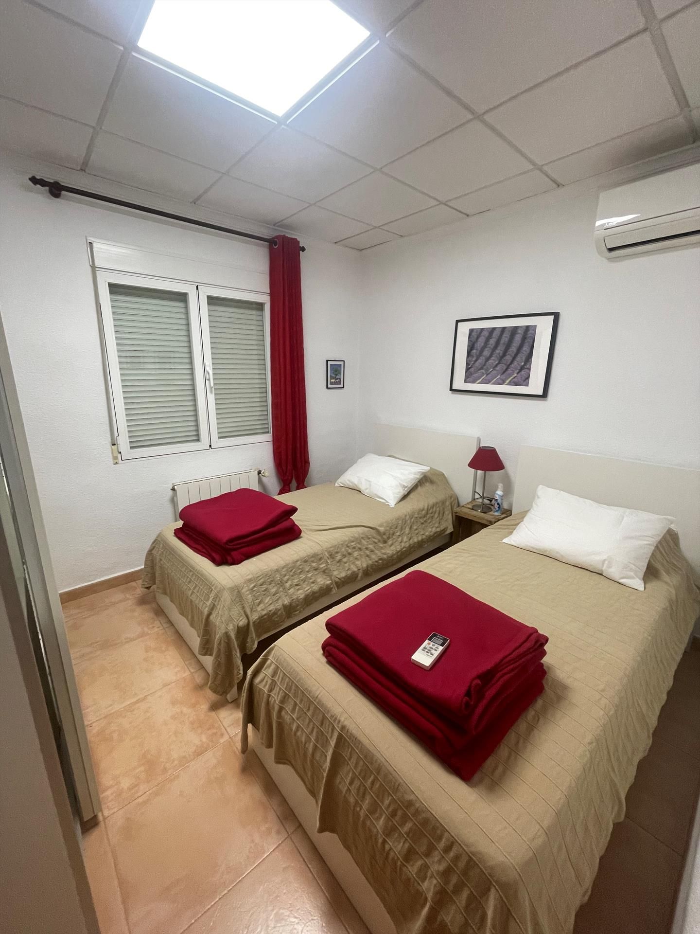 • dormitorio con 2 camas individuales (que miden 180 por 90 cm) y baño privado