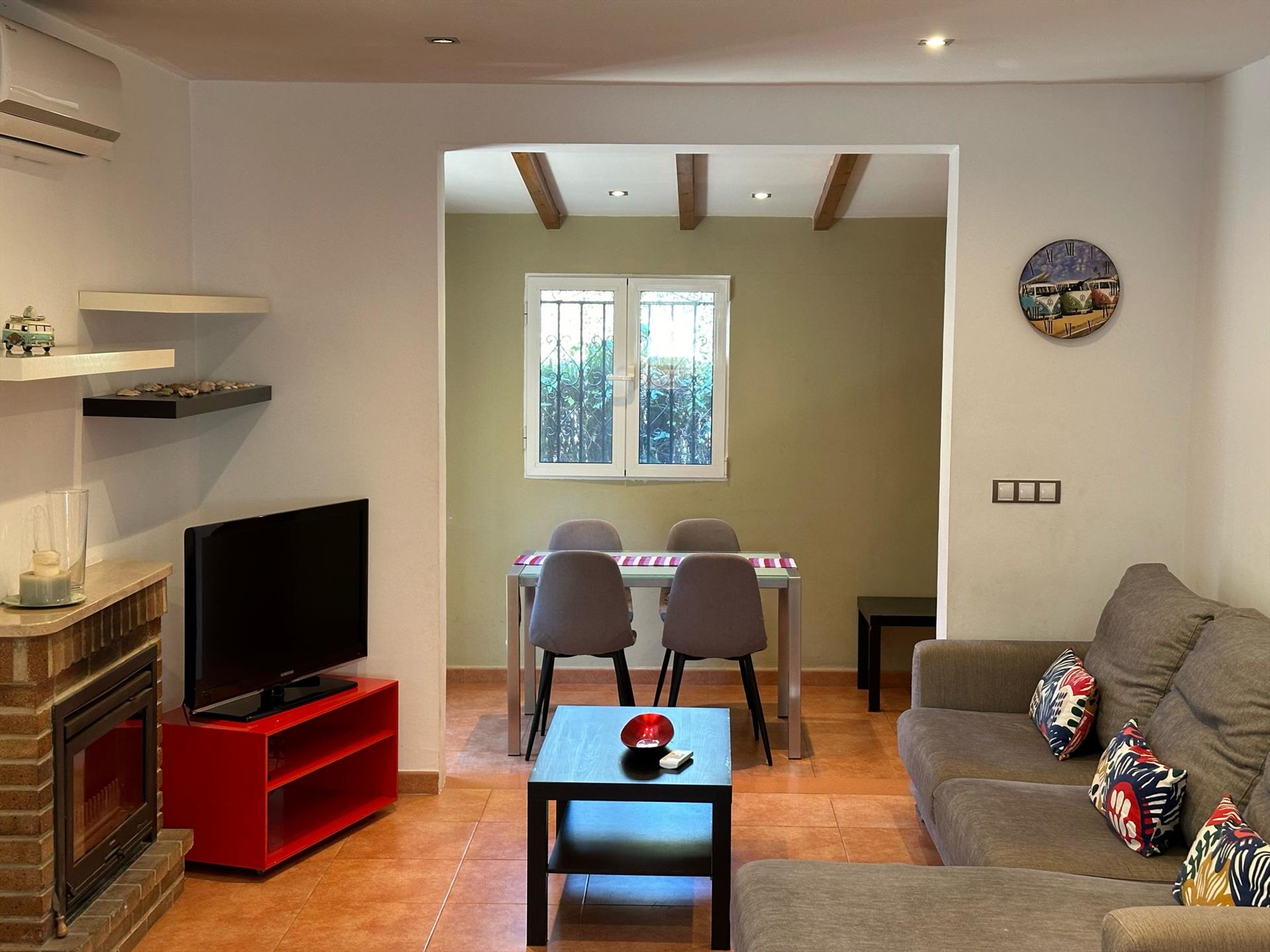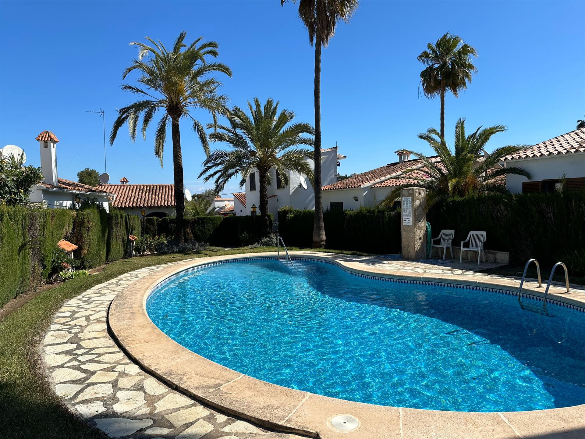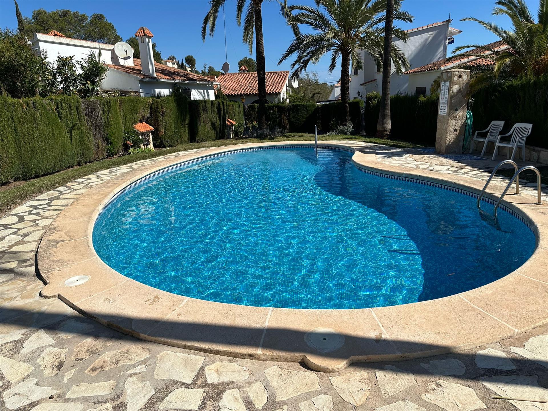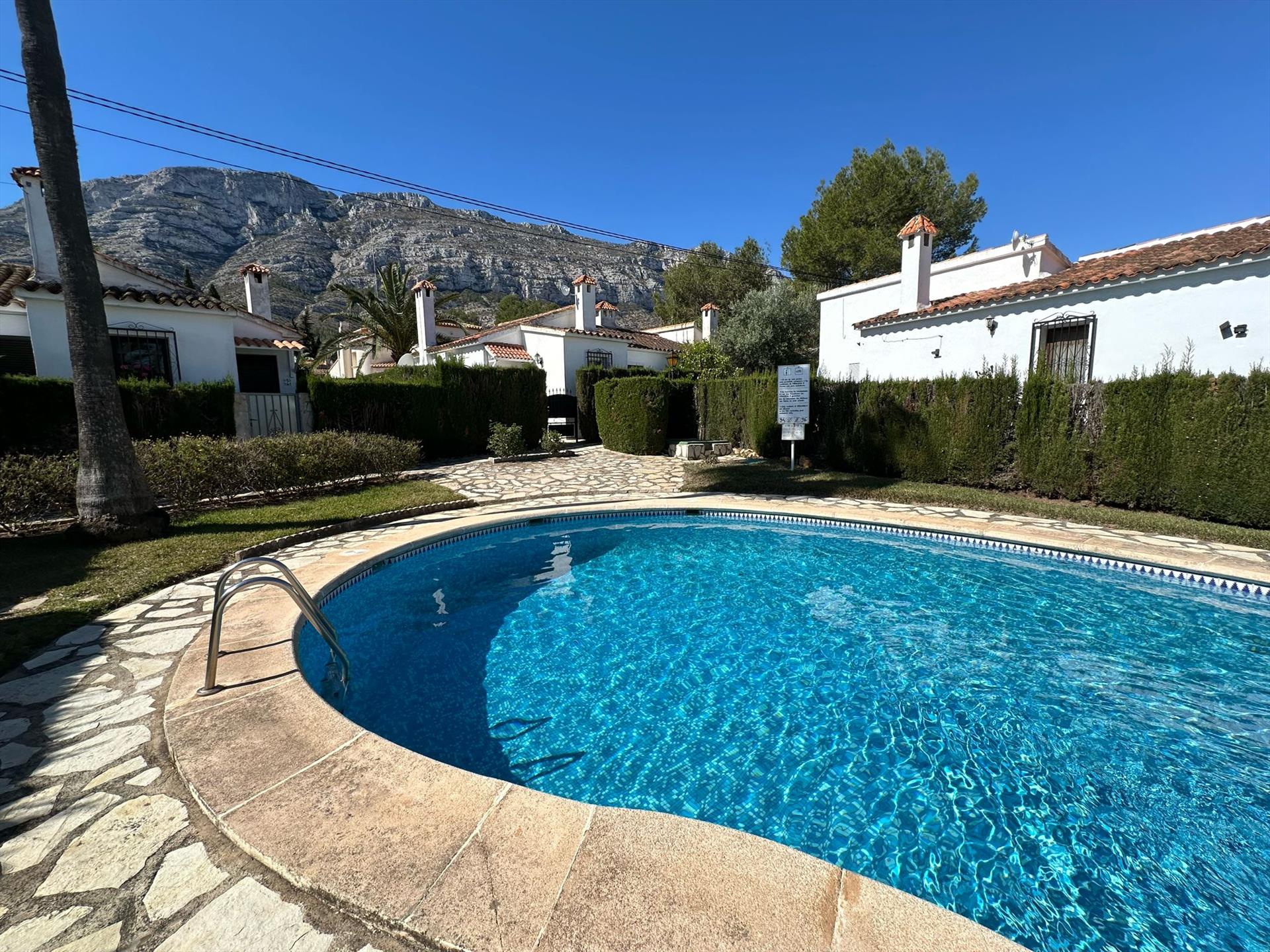 Schönes und gemütliches Haus mit Gemeinschaftspool in Denia, Costa Blanca, Spanien für 5 Personen. Die Unterkunft befindet sich in einer hügeligen und städtischen Umgebung und etwa 2 Km entfernt vom Strand. Die Unterkunft hat 3 Schlafzimmer und 1 Badezimmer. Die Unterkunft bietet einen Garten mit Rasen, Kies und Bäumen und einen Blick auf die Berge. Die Nähe vom Strand und Einkaufsmöglichkeiten macht dies zu einem geeigneten Haus um Ihre Ferien in Spanien zu verbringen mit Familie und Freunden.
