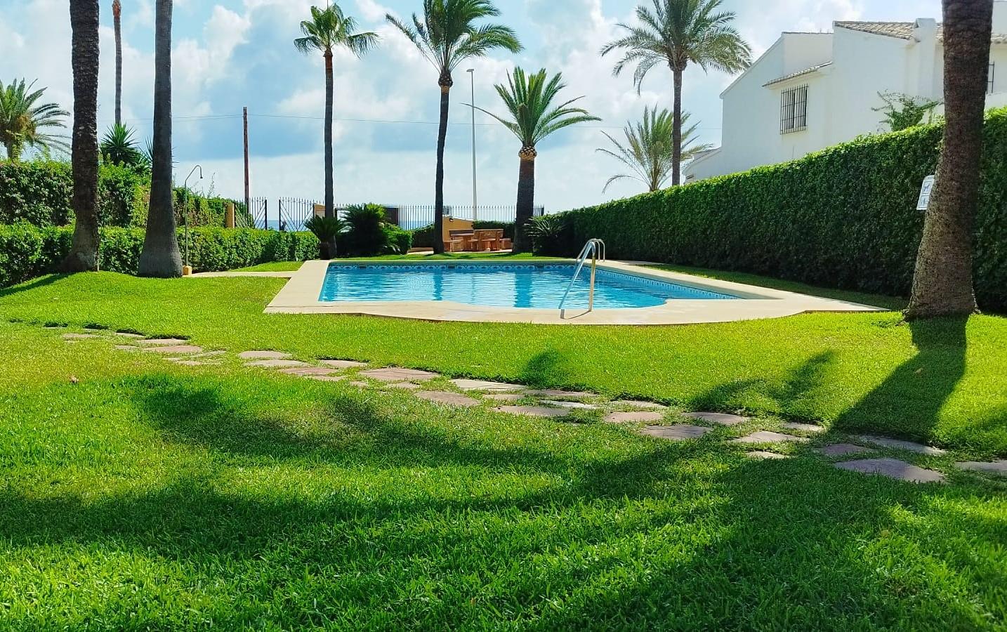 Magnifique appartement avec piscine commune à Xàbia, Costa Blanca, Espagne, pour 3 personnes. L'appartement est situé dans une belle région. L'hébergement offre un magnifique jardin avec pelouse et arbres bord de mer.